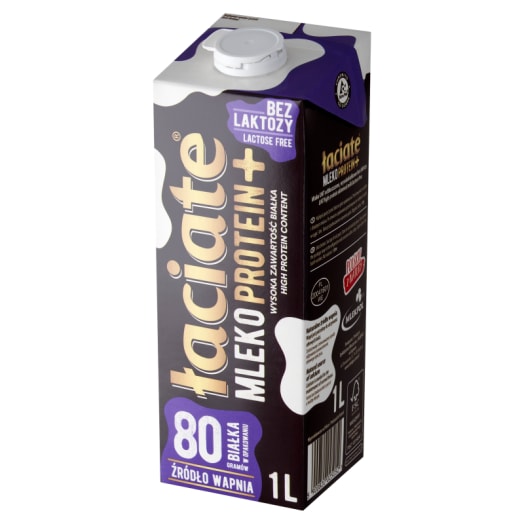 Mleko proteinowe bez laktozy Łaciate Protein+ to odpowiedź na potrzeby klientów, którzy poszukują produktów wysokobiałkowych. Jest wzbogacony białkiem, odtłuszczony, pozbawiony mlecznego cukru, a także pasteryzowany w wysokiej temperaturze. Szczególnie polecane sportowcom, osobom z nietolerancjami pokarmowymi, a także na diecie.
