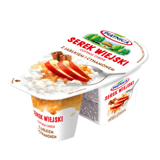 Serek wiejski z jabłkiem i cynamonem, którego smak przywodzi na myśl pyszną domową szarlotkę, to nowość w ofercie Piątnicy. Delikatne śmietankowe ziarenka serka znakomicie komponują się z jabłkowo - cynamonowym musem. To zdrowa i pyszna przekąska, która doda Ci energii i zachwyci przyjemnością smaku.