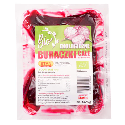 Buraczki gotowane całe ekologiczne. Produkt gotowany na parze, pakowany próżniowo, gotowy do spożycia